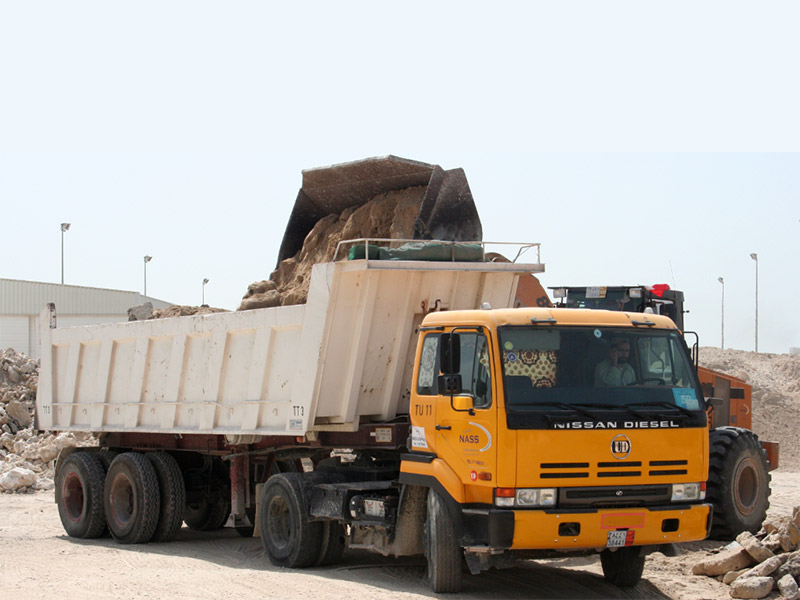 Trucks lined up for Paver at Isa Town Gate Interchange